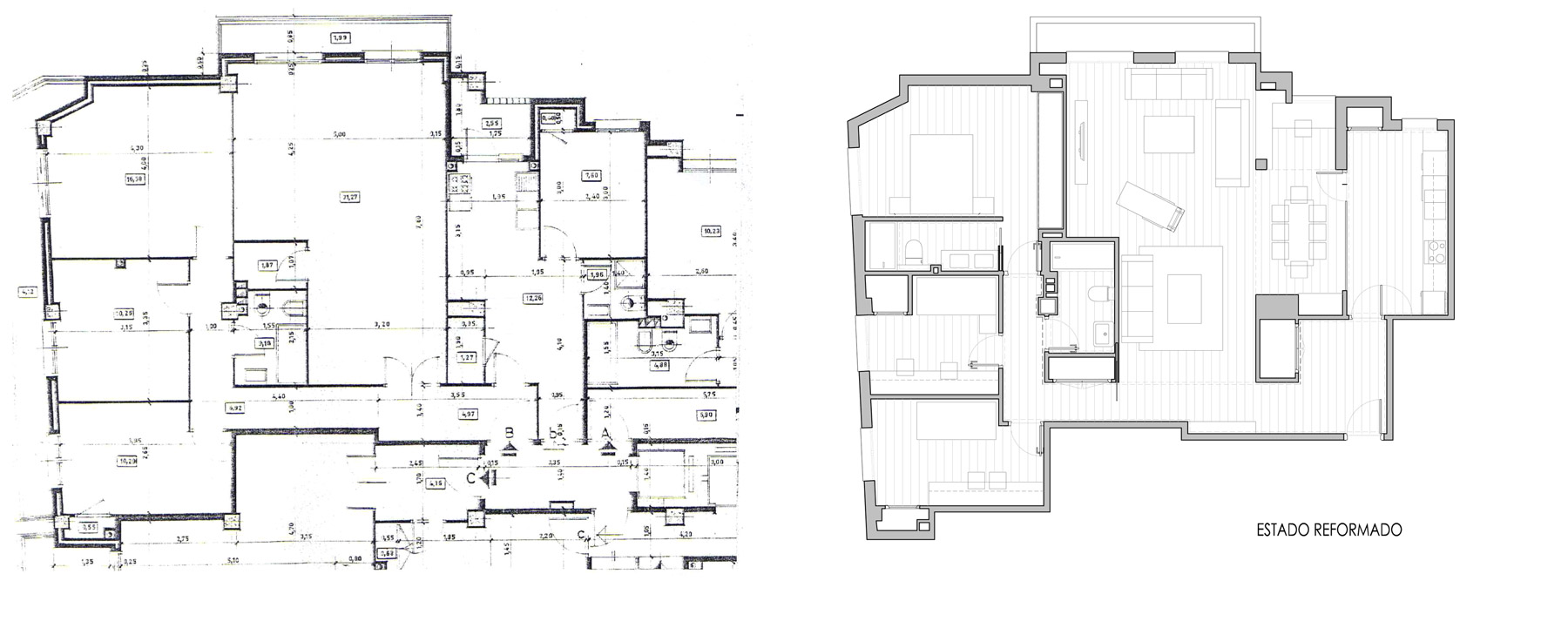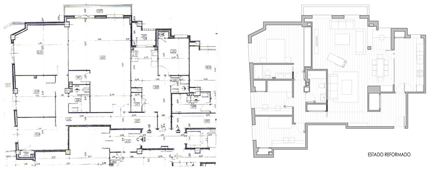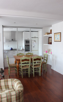 Bajo esas premisas se actualizó la vivienda aprovechando las luces a Sur, integrando el estar comedor, mediante una gran cristalera, con la cocina y el pasillo que unía de la zona de día a la de noche; y configurando un gran espacio polivalente, con circulaciones en ciclo.
