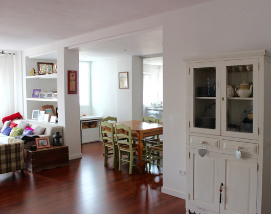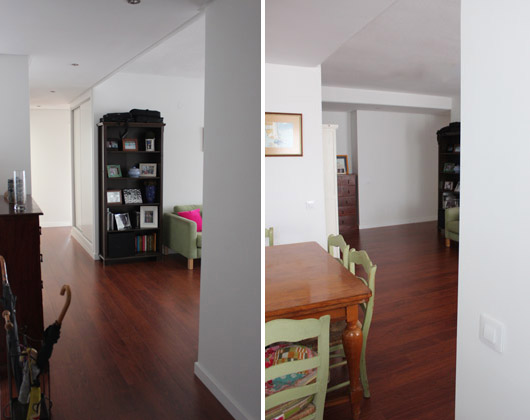 Un único pavimento para toda la vivienda de laminado de madera de merbau, el falso techo y armarios a modo de mamparas conformaban ese nuevo espacio diáfano, abierto y lleno de luz, que se mimetizaba del todo con el mobiliario de la vivienda.