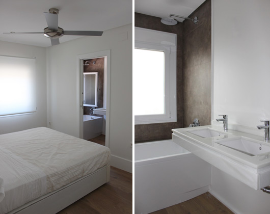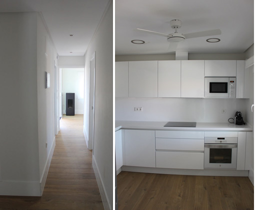 El blanco como color dominante, recibiendo la luz que se filtra, y un suelo laminado acorde a la intervención crean el espacio que se pretendía.