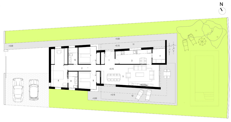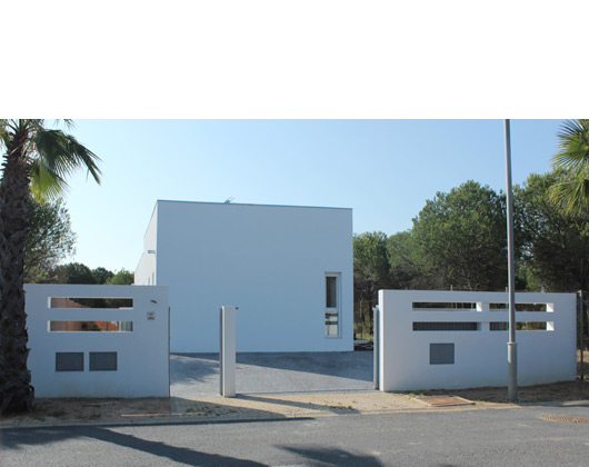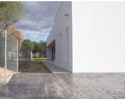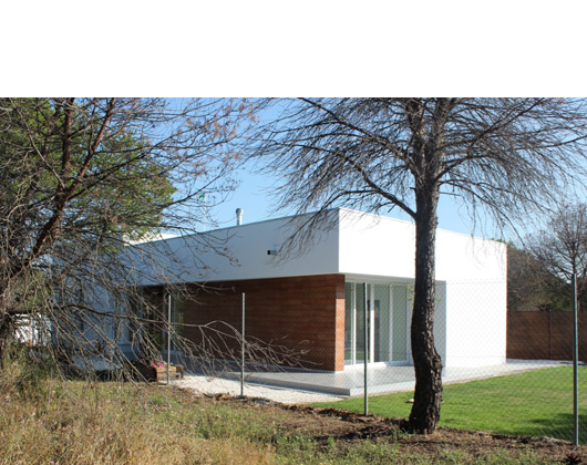 El encargo ubicado en La Urbanización La Monacilla, en un entorno único y rodeado de vegetación, a los pies de un campo de golf consistía en una pequeña vivienda unifamiliar que debía estar íntimamente ligado a la parcela, y a las vistas que esta ofrecía, concentrando el programa de necesidades en una única planta. Todo ello llevó adaptar totalmente la geometría de la planta a la de la parcela, para poder obtener las mejores visuales al bosque de pinos que lindaba con la parcela. Se trataba de meter el paisaje dentro de la vivienda. El lenguaje empleado, sencillo, de arquitectura blanca con grandes huecos, y volúmenes muy definidos, resultó idóneo para el programa de necesidades que se requería para el cliente, consiguiendo del todo la conexión interior-exterior. Ni menos ni más.