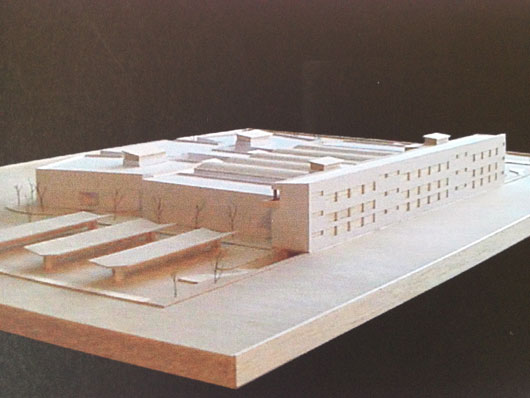 La propuesta planteaba la ampliación de la consejería mediante una gran pieza prismática adosada al edificio principal y conectada por dos torres de comunicación. Esta pieza presenta fachada a la carretera Nacional V. Se contempló la actuación con el diseño de unos aparcamientos cubiertos al aire libre.