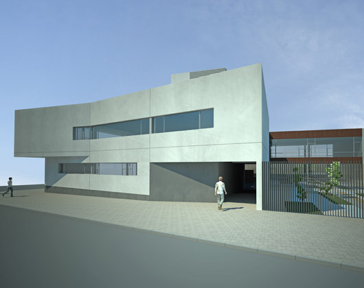 Posicionar el edificio de manera que se posibilite no solo su ampliación, sino también la segregación de la parcela sobrante una vez consumida la edificabilidad necesaria, sólo es posible renunciando a una parte de la fachada del solar. De las dos posibilidades de segregación, una en la fachada sur asomando al parque y otra en la fachada este dando a calle, se opta por esta última.