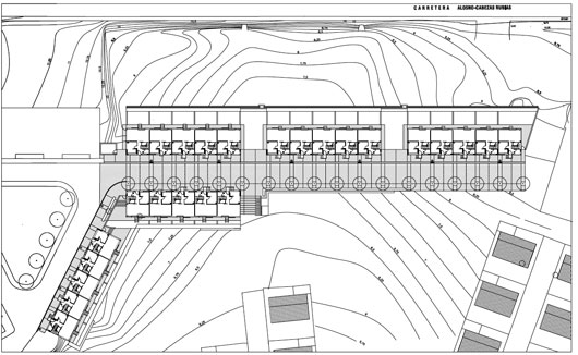 Además el hecho de que las cotas de los extremos del rectángulo donde se puede ubicar los volúmenes de las viviendas sean iguales, facilita el trazado horizontal de un viario lineal sencillo y horizontal.