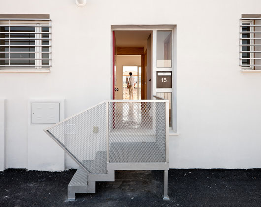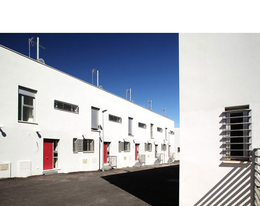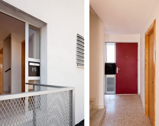 Las viviendas se conectan al viario través de una pequeña escalinata cerrándose a una superficie que queda privatizada para cada vivienda, a modo de patio posterior.